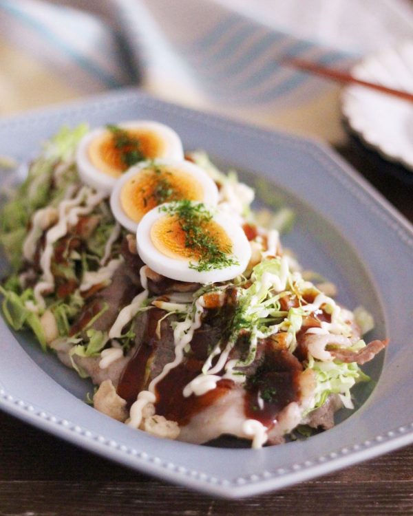 パッと見ると鉄板焼きの人気料理のとん平焼きのようですが、こちらのレシピはキャベツを炒めず卵も巻かないで簡単に作れるとん平焼き風のサラダです。