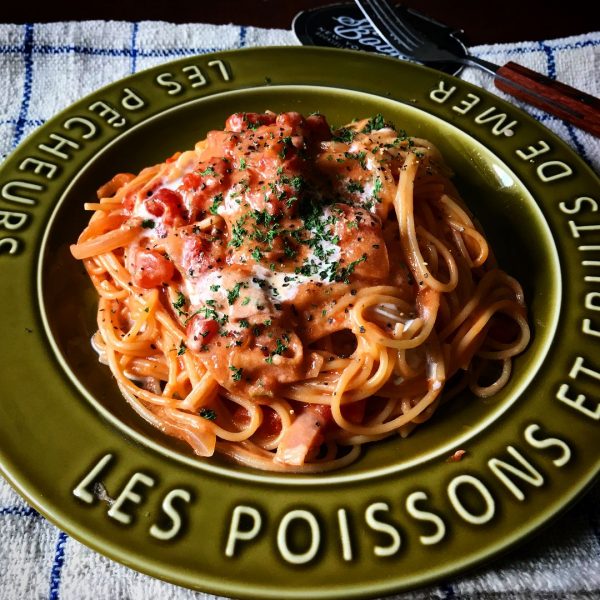 人気のトマトクリームパスタは、トマトの酸味が生クリームでマイルドになるクリーミーで美味しいパスタ。