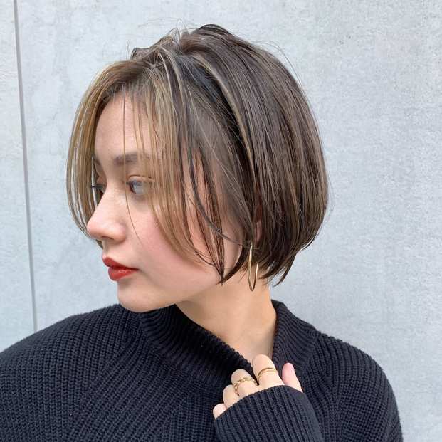 部分的に色味を加えるだけなのに色味のコントラストが自然な立体感や奥行きを演出。髪量の多い人でも見た目が重くなりすぎないのも嬉しいポイントです。透明感をアップさせる効果も期待できるので、ベーシックな重ためシルエットのボブと合わせてもグッとおしゃれ感が引き立ちます。