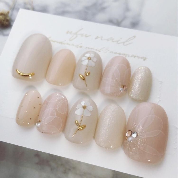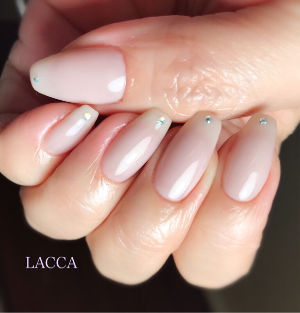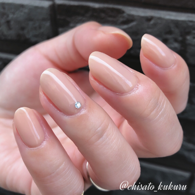 ストーンをさりげなくワンポイントでのせるとネイルをしている気分も高まって嬉しいですね。