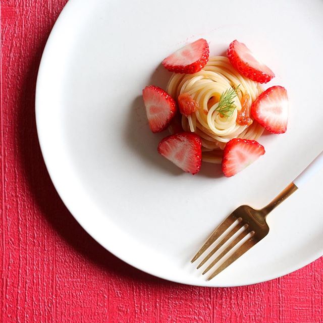 酸味のあるソースの味付けといちごの甘酸っぱい香りが、パスタとよく絡んでとっても美味しいですよ。