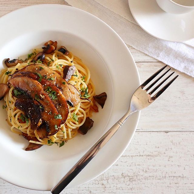 大きなマッシュルームがポイントの、さっぱりパスタをご紹介します。