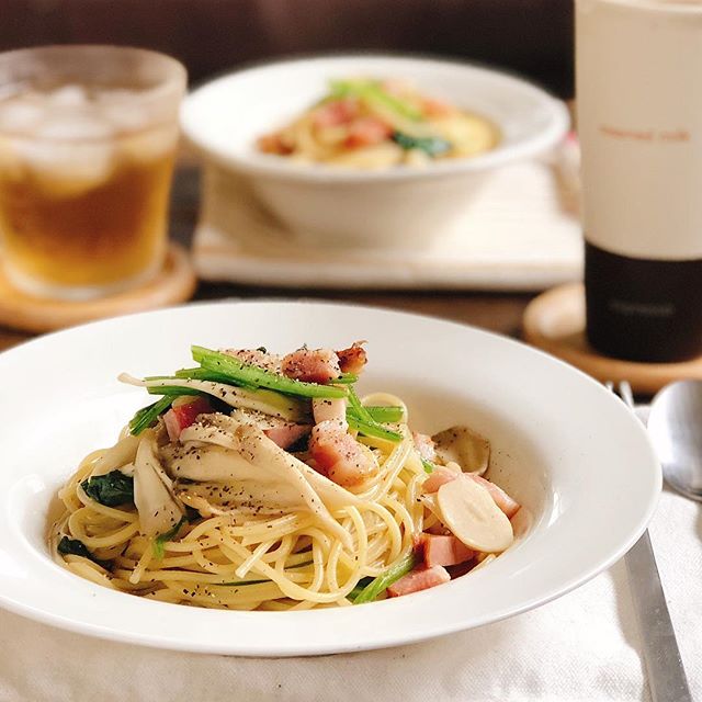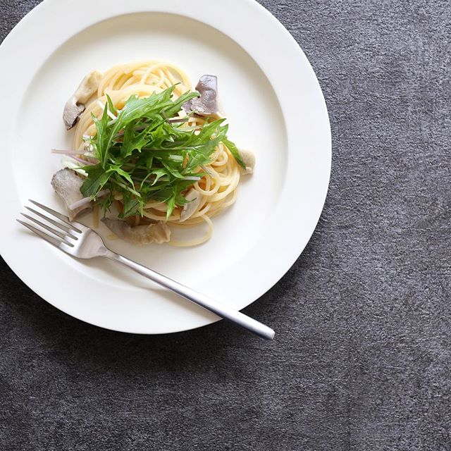 生野菜でさっぱり!あわび茸と水菜の和風パスタ