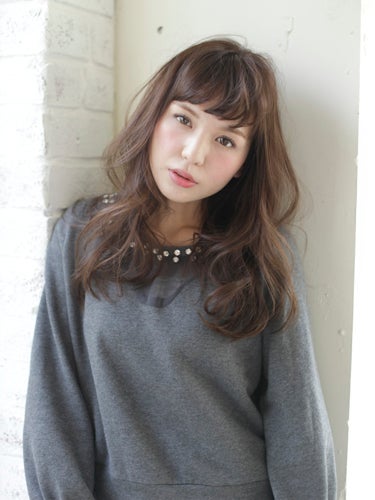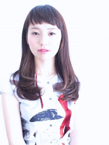 短めの前髪を少し重めに残すロングヘアは、縦長効果があって丸顔さんに人気。