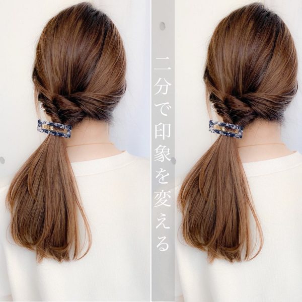 黒髪などのダークトーンの髪色なら、明るい色のヘアアクセサリーなどを使うのもおしゃれ♪