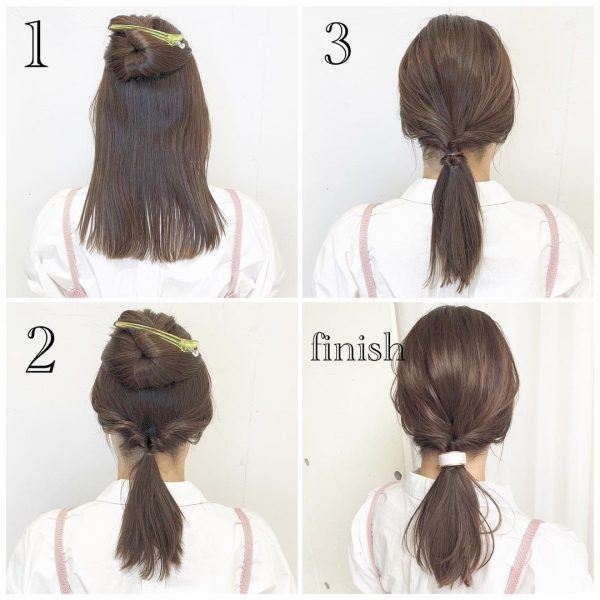 ボブの直毛のストレートさんも参考にしやすい、ねじるだけできる簡単なひとつ結びアレンジです。