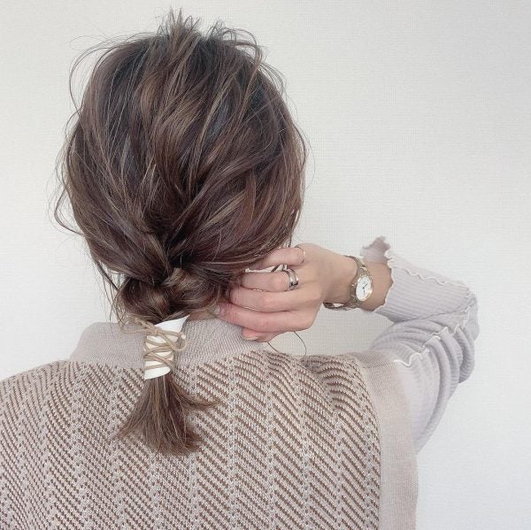 動きをつけてもおしゃれな紐ヘアアレンジ