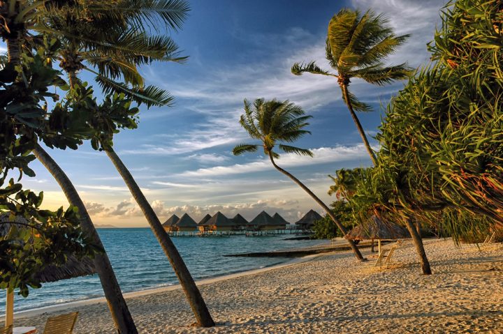 新婚旅行の行き先として有名なリゾート地、タヒチのボラボラ島。伝統的な水上バンガローが並び、楽園に来たかのような感覚にさせてくれます。世界一綺麗な海と言えるでしょう。