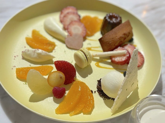 「プレート・デセール・コース」で食べられる「アシェットデセール」は、単品で頼むことも可能。公式サイトには載っておらず、足を運んでくれたゲストへの感謝の気持ちとして提供しているメニューです。 旬のフルーツと手作りスイーツを用いて、パロラさんがお客さんのイメージに合わせて作成。まさに一期一会のスペシャルなプレートです。
