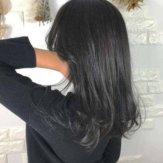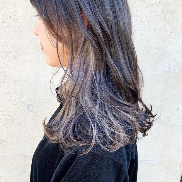 地毛よりも暗いトーンのネイビーで、肌色を明るく見せてくれるヘアカラーです。