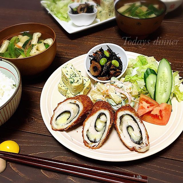 和食の献立のメインに人気のしそチーズ巻きです。