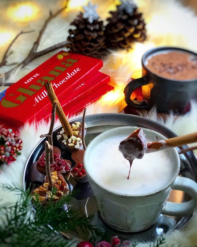 チョコにはスティックを付けておき、熱々のミルクに溶かしながら頂きます。