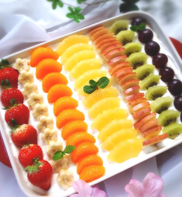 フルーツはこちらのように一列に並べてトッピングすると簡単にデコレーションできます。