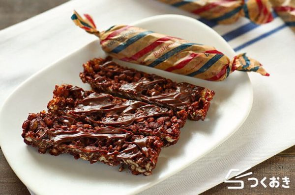 こちらはグラノーラと板チョコで簡単に手作りできるチョコバーです。ホームパーティーでも気軽につまみやすいでデザートで、ワインのお供にも人気がありますよ。