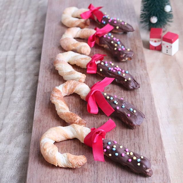 こちらはスティックの形に成形して焼いたパイに、チョコレートをコーティングしたおしゃれな一品です。