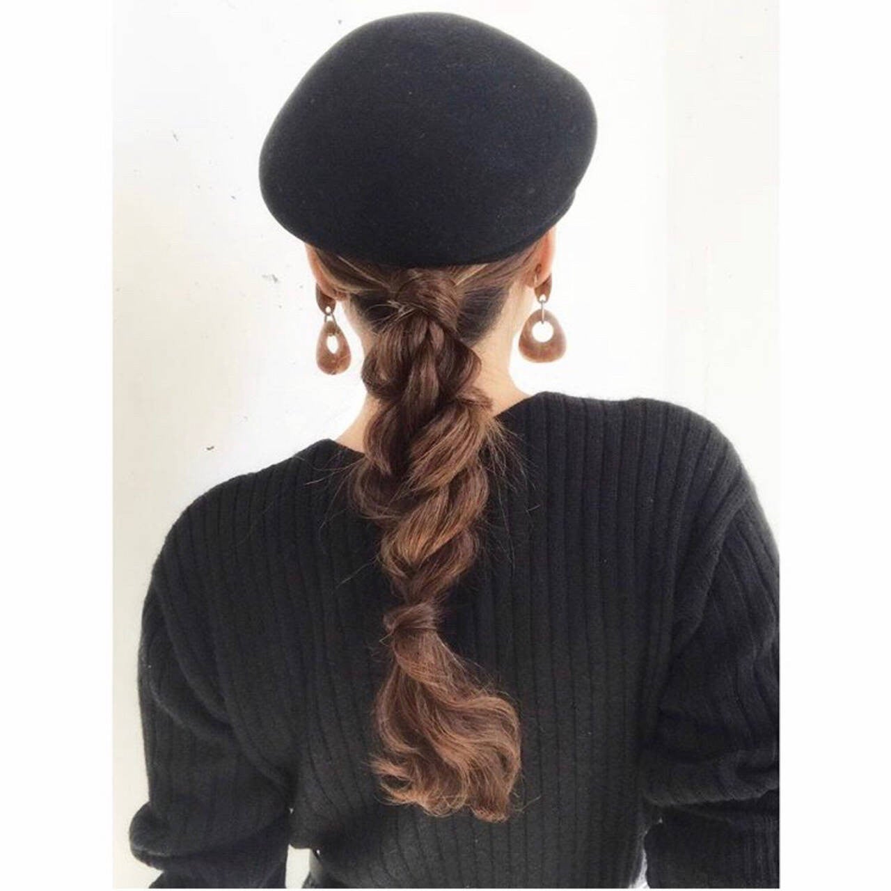 ポニーの毛先を三つ編みにした後に、三つ編みを手でほぐすだけ!アンニュイな大人っぽヘアになりますよ。顔周りがすっきりして見えるので大きいアクセサリーとの相性も抜群です。