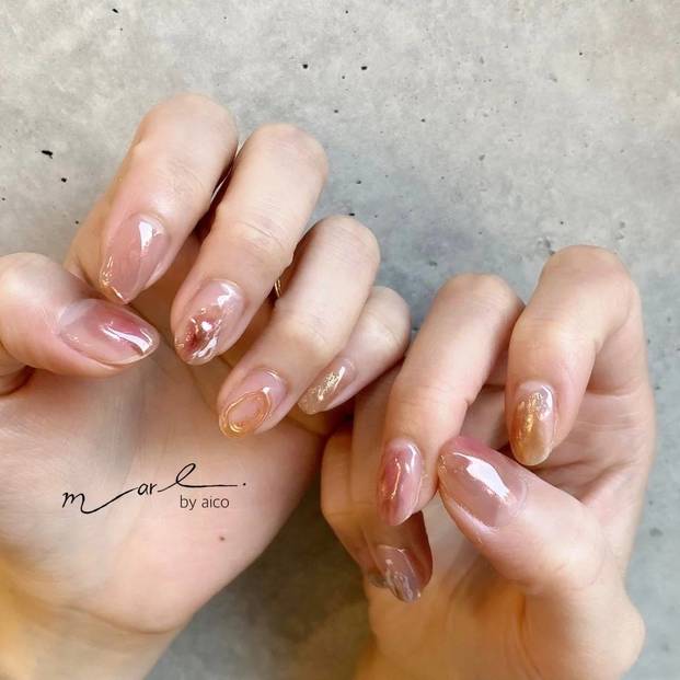 冬におすすめのピンクゴールドネイル①淡い色で柔らかく