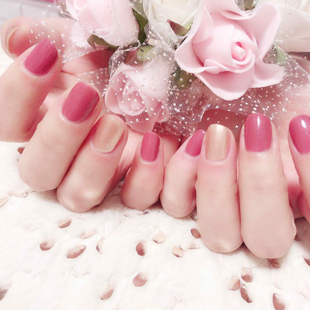 いつもより少し華やかな指先にしたいときは、アクセントに601を使ってみませんか?ピンクゴールド系のベースカラーに微細ラメとパールが入っていて、ローズピンク242に合わせるとしっくり馴染みます。