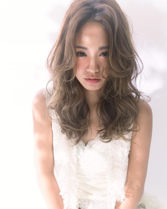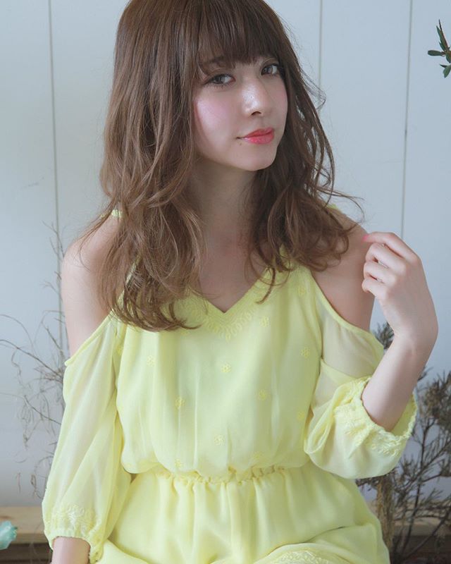 ふんわりカールの長め前髪が、ベース型さんを女性らしい印象に見せるのでおすすめです。