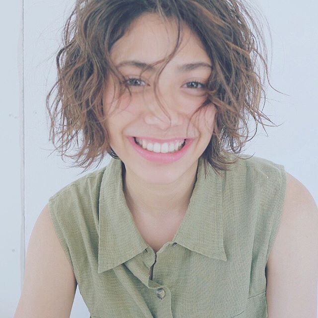 ゆるふわパーマが柔らかいイメージを演出し、ベース型の角ばったイメージを吹き飛ばしてくれます。