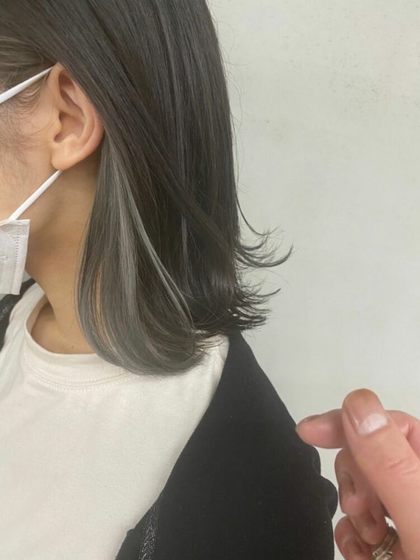 アッシュベージュのインナーカラー×黒髪