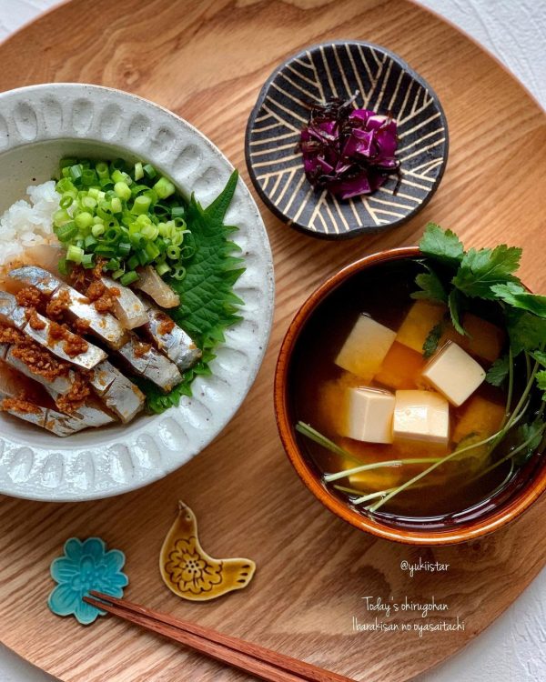 このランチプレートはご飯に鯵のお刺身を乗せているのでとても簡単に手作りができます。