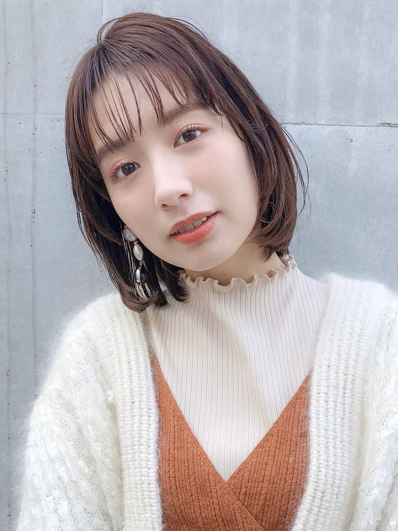 オフィスヘアでも可愛さがほしいOLさんは、極薄バングで抜け感をだしましよう。ナチュラルなボブヘアでも前髪だけで可愛さがUPします。