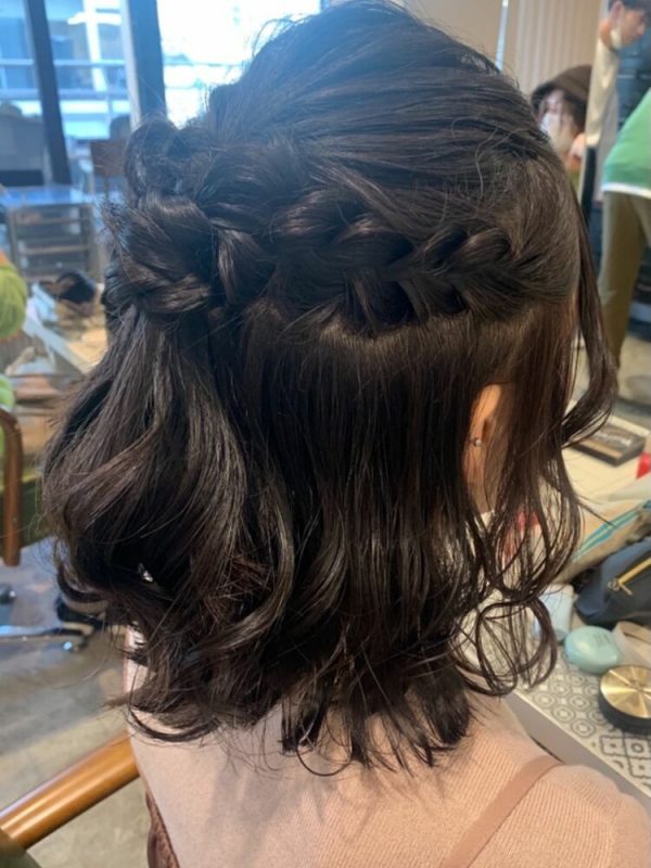 編み込みアレンジのハーフアップ