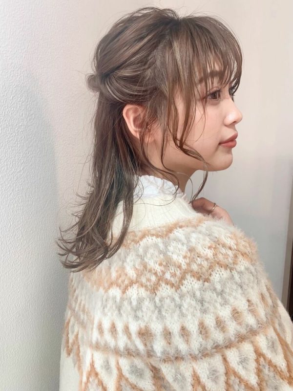 ミディアムのアップヘアアレンジ|ハーフアップ