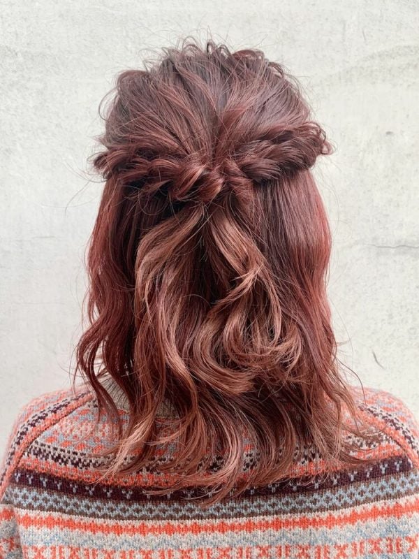 編み込み×くるりんぱのハーフアップ