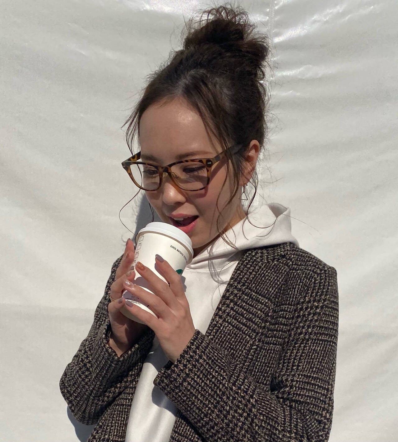 どんな服装にも合うのがお団子アレンジ。高い位置で無造作にまとめて、リラクシーな雰囲気に♡オフのときのメガネとも相性抜群ですよ◎。