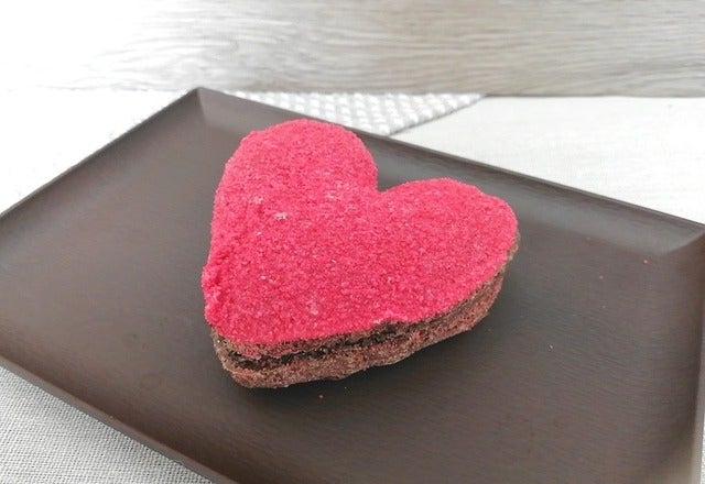 ハート型で、真っ赤なフランボワーズシュガーがとてもキュート!