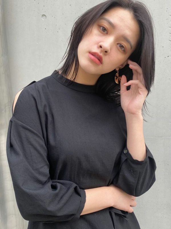 センターパート前髪も相まって、丸顔に似合う大人っぽい髪型に仕上がります。