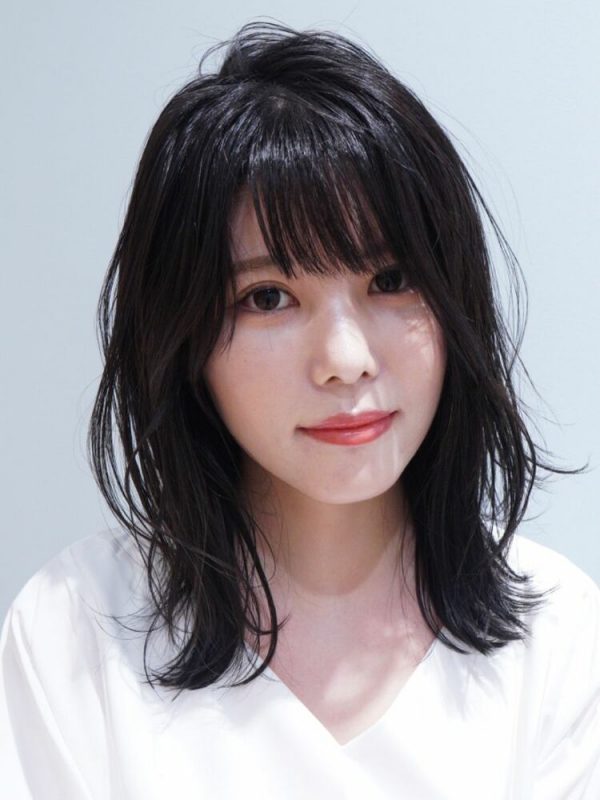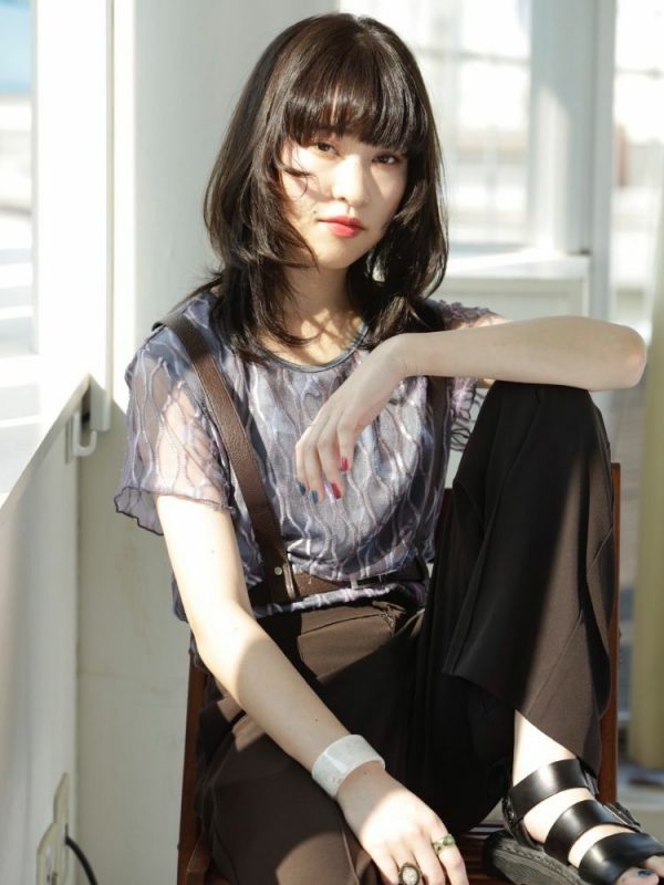 軽い毛先と対照的に、前髪は若干厚めにとることで垢抜けて見えます。
