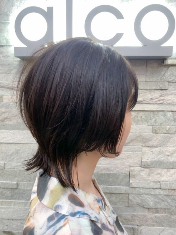 シンプルな黒髪ボブも、ウルフカットにすることで大人女性の髪に動きを与えてくれます。
