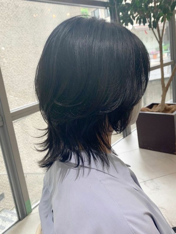 セットがしやすく、髪にダメージを与えにくいウルフカットと黒髪はベストコンビかも。