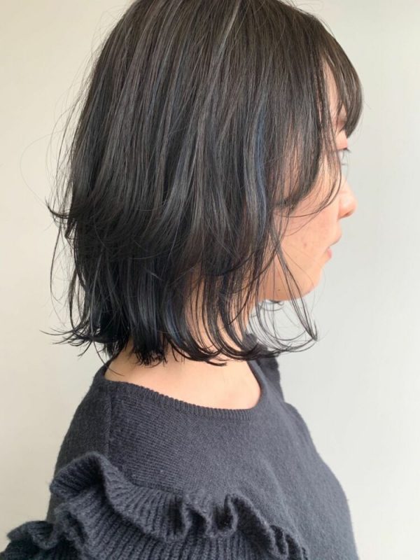 毛先に重心のあるシルエットは、黒髪のままだと重く見えるので、ヘアカラーをいれるのがおすすめ。