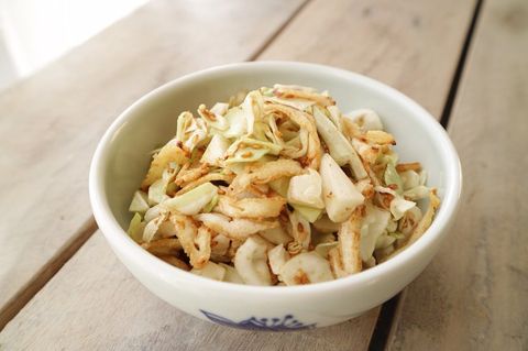 ツナの代わりに干しエビを使ったキャベツの副菜です。