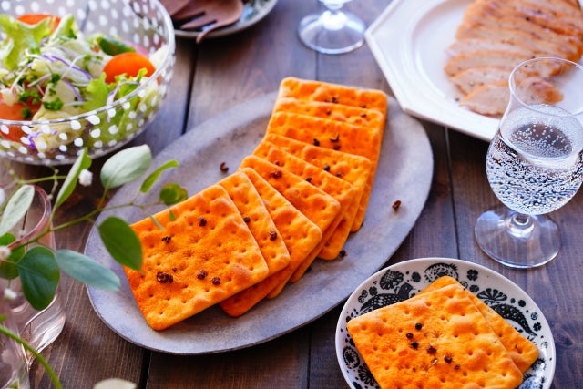 クラッカーは12枚入りなのだけど、1枚が通常のクラッカーの2倍くらいのサイズで、黒い粒(花椒かな?)がしっかりと入っています。
