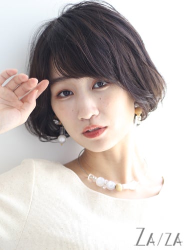 コスメパーマで立体感を出したショートヘア。
