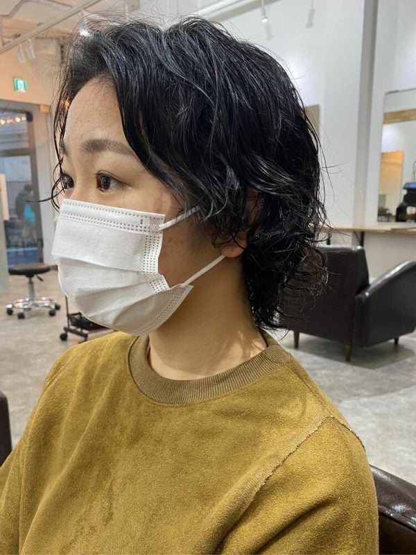 大人の女性の定番である黒髪のミディアムヘアも、軽やかなウルフカットとくせ毛風のニュアンスパーマなら新鮮な印象になります。