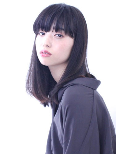 黒髪と厚めの前髪ありでモードな雰囲気になりますよ。