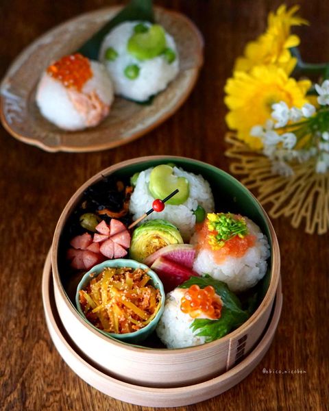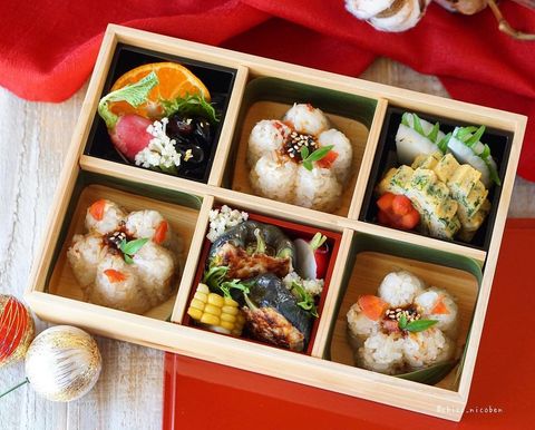 おにぎりと合わせるお重のような入れ物は、運動会にぴったりな人気のお弁当になるはず。