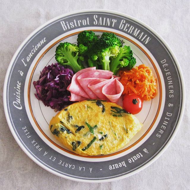 ほうれん草入りのオムレツをメインおかずにしたワンプレート。