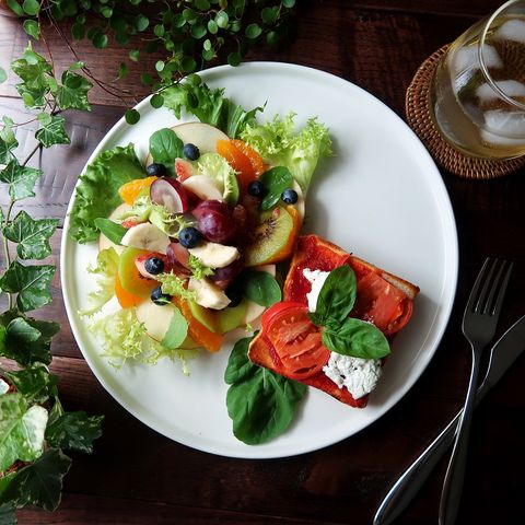 見た目がとっても華やかなフルーツサラダは、一度にたっぷりのビタミンが手軽に摂れるヘルシーなサラダ。