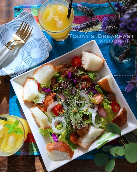 パンサラダは主食のパンと野菜を一緒に食べられるおしゃれなワンプレートご飯に。