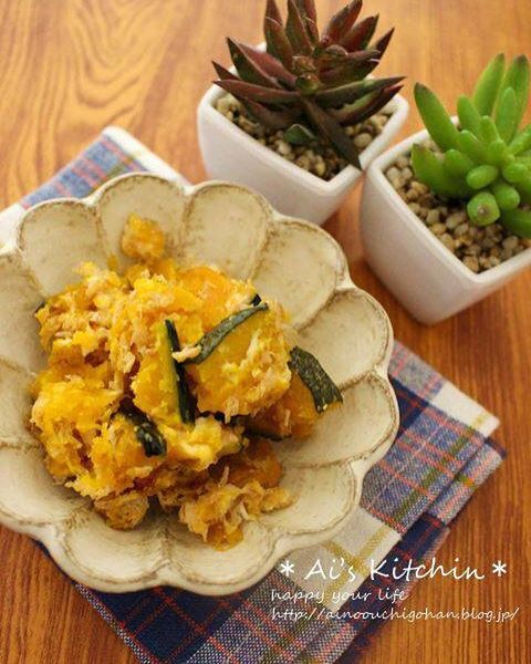 やさしい甘さが人気のかぼちゃサラダは、マヨネーズで和えた洋風サラダだけでなく、クリームチーズとめんつゆと鰹節で和えた和風のサラダにしても美味しいです。