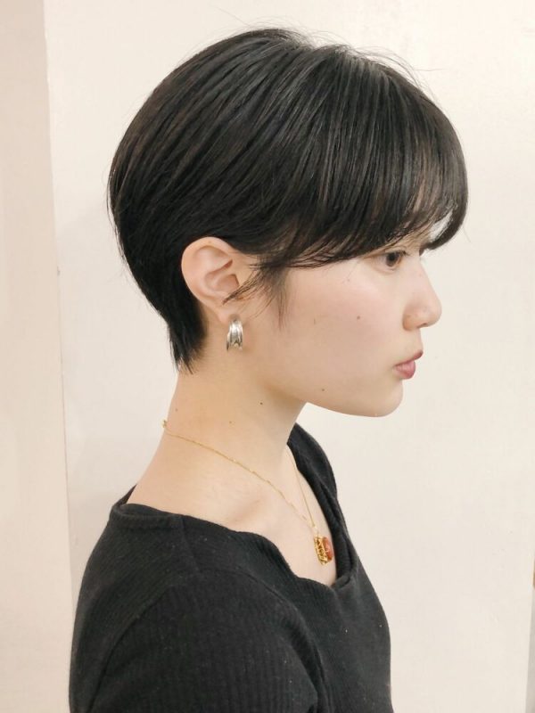 黒髪なら大人っぽさもあるので、マッシュショートにすると幼く見えがちな丸顔さんにもおすすめですよ。