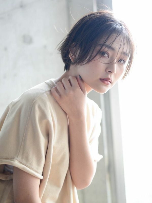 かきあげバングの黒髪マッシュショート