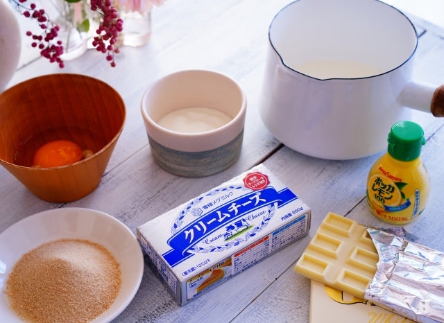 (私はチーズ味が強い方が好きなので)生クリームとホワイトチョコレートは同量の100mlずつとしていますが、生クリーム150mlにホワイトチョコレート120mlでも美味しく出来ます。